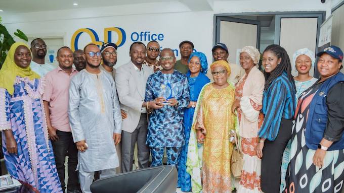 CONAKRY-A l’occasion de la cérémonie de présentation des vœux de nouvel an, ce vendredi 30 janvier 2026, à l’Office Guinéen de Publicité (OGP), le personnel a décerné un trophée au Directeur Général de l’Institution, Aladji Cellou Camara. Un geste de reconnaissance visant à témoigner avec force au récipiendaire son leadership dans la conduite de l’OGP.