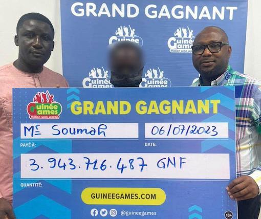 Le jeudi 6 juillet dernier, la société Guinée Games procédait au paiement d’un gain de près de 4 milliards de francs guinéens. En présence de Mr Sy Savané, DGA de l’Autorité de Régulation du Secteur des Jeux et des Pratiques Assimilées (ARSJPA), le parieur, Mr Soumah, recevait ce gain historique des mains des représentants de la société de loterie.