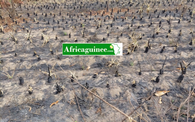 « Notre plus grande inquiétude, ce sont les feux d’origine inconnue. Chaque saison sèche, les plantations sont ravagées par des incendies qui se déclarent parfois en plein centre des champs. Cela dépasse le cadre des feux de brousse classiques. Nous soupçonnons des actes de malveillance », affirme M. Bangoura.