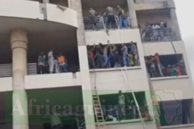 Selon un témoin et les images visionnées par Africaguinee.com, le feu s’est emparée du dernier étage du bâtiment, situé non loin du marché Niger.