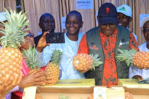 Elhadj Moussa Camara président de l’interprofession de l’ananas de Guinée a dans son intervention souligné la portée de ce projet qui est financé par le gouvernement guinéen à hauteur de 23 milliards de francs guinéens. « Dans le cadre de la culture de l’ananas, l’État a accepté avec nous de monter un projet pilote qui consiste à mettre en valeur 250 hectares d´ananas au niveau des principaux bassins (Kindia, Forécariah dans la zone de Maferinyah, de Dubreka à Tanèné, de Fria à Tormelin), voilà aujourd’hui là où nous sommes en train de travailler. Mais quand on dit 23 milliards de francs guinéens tout n’est pas de l’argent espèce mais des intrants agricoles« , a-t-il précisé.